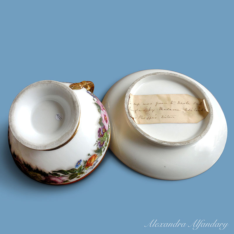 French, Paris, c. 1840. A glued label to saucer saying that the cup and saucer were given to Andrew Douglas by Madame Adelaide, Sister to Louis Philippe.